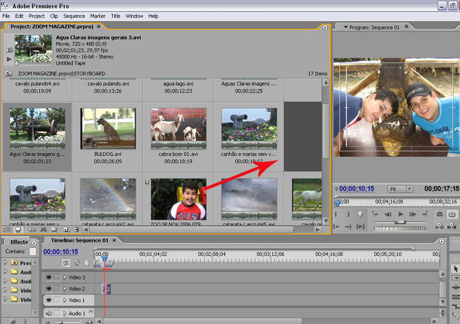 Primeiro iremos selecionar e importar todos os clipes que farão parte desta edição. Lembre-se da importância de fazer uma pré-edição antes mesmo de iniciar a captura. Faça uma rápida leitura das imagens e selecione as que realmente você irá utilizar. Anote todos os valores de timecode dos clipes selecionados, para que no momento da captura seja possível registrar e capturar somente os trechos selecionados através do BATCH CAPTURE. Nas próximas partes voltaremos a abordar esta importante ferramenta de captura do Adobe Premiere.