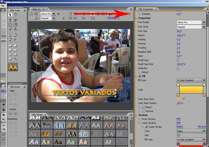 Ao analisarmos a ferramenta, é possível perceber que o poder de criação para esse tipo de material está cada vez melhor, possibilitando ao editor realizar seus trabalhos com mais qualidade e criatividade. Para abrir o Title, o caminho continua o mesmo: Menu FILE / NEW / TITLE: