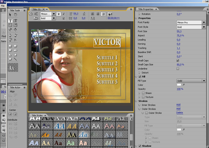 O Adobe Premiere Pro CS3 vem equipado com um poderoso e já conhecido gerador de textos, proporcionando maior possibilidade de criação de textos, legendas e até mesmo desenhos. Com isto, a edição ganha em qualidade, velocidade e criatividade.