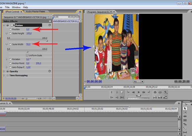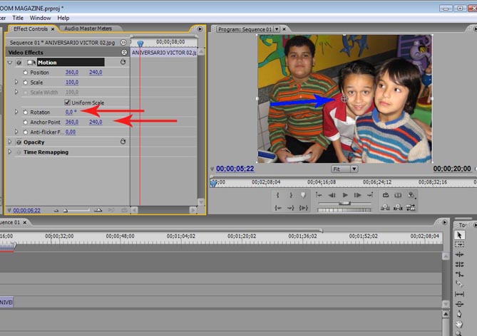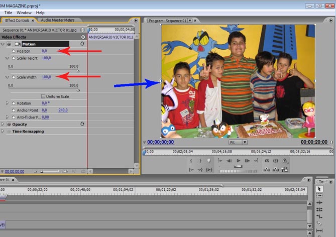 Se alterarmos o Anchor Point para uma extremidade da imagem, a escala terá outra referência para diminuí-la ou aumentá-la. Vamos alterar de 360 X 240 para 0 X 240. Veja o exemplo mostrado abaixo: