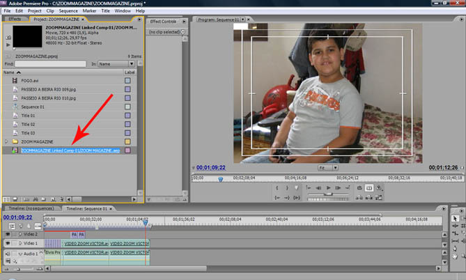 Este arquivo pode ser levado para a seqüência, onde será trabalhado ou executado. Qualquer vídeo que esteja sendo trabalhando dentro do Premiere poderá ser adicionado ao After, simplesmente com um copiar/colar.