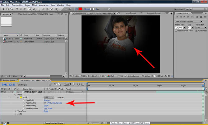 A máscara criada dentro do After Effects também está presente no Premiere, com todas as suas propriedades. Ou seja: está transparente dentro do Premiere. Note que cada modificação efetuada no After é atualizada no Premiere: