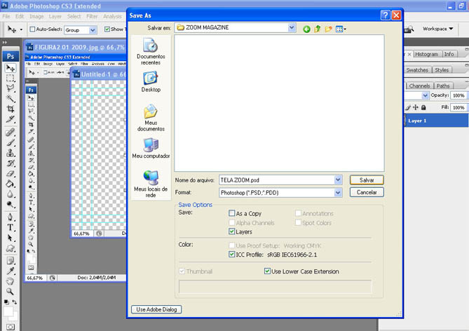 É importante lembrar que o fundo da imagem deve ser transparente, para que possa entrar no Premiere com esta propriedade, também. Feito isto, salve-a em PSD para que a transparência possa ser preservada: