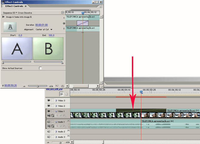 Este tipo de edição, com a trilha de transição, é chamada "A/B editing".No Premiere Pro não existe mais esta trilha. O sistema de edição é chamado single-track.