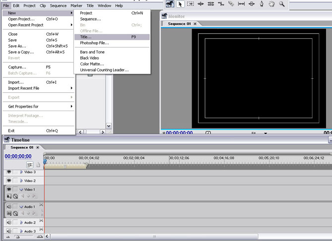 No menu do Premiere Pro, selecione FILE / NEW / TITLE:
