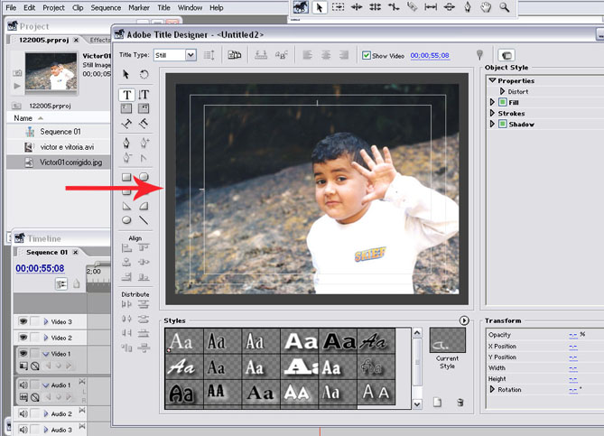 Para que seja mais fácil a determinação do texto sobre o vídeo desejado, é aconselhável que você já tenha o vídeo colocado na timeline. Se na hora em que você for abrir o Title, o cursor estiver sobre o ponto desejado da imagem, automaticamente o frame em questão estará no fundo do Title. Experimente.