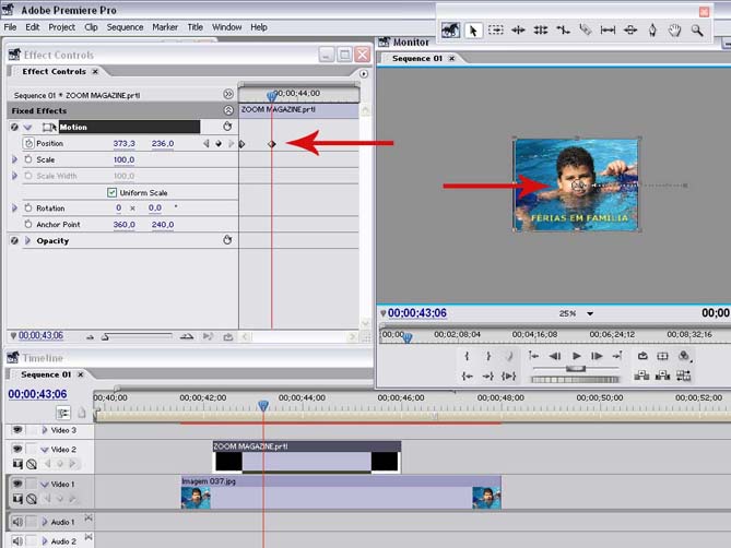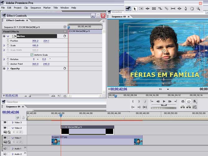 Vamos agora abrir a paleta Effect Control para termos acesso ao MOTION do Title. Vá a WINDOW/EFFECT CONTROLS. Lembre-se que para que o Motion da imagem em questão esteja acessível, é necessário que o clip esteja selecionado na timeline.