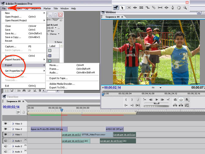 No Adobe Premiere Pro, as possibilidades de exportação encontram-se no menu FILE / EXPORT.