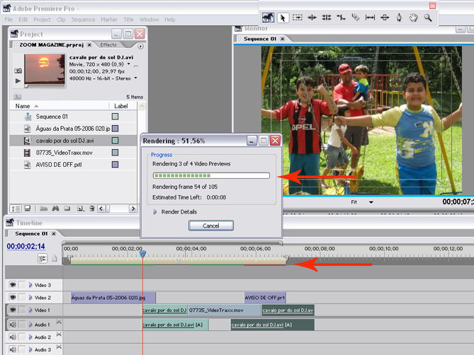 Vale lembrar que antes de entrar em qualquer opção de exportação, ou mesmo iniciar este processo, é necessário renderizar todas as áreas que estão marcadas com a linha vermelha. Para isto é necessário marcar estas áreas com a “WORK AREA BAR”, e depois iniciar o processo apertando a tecla “ENTER”. Realizado o processo, as linhas vermelhas se tornarão verdes.