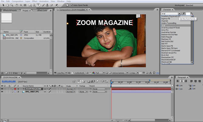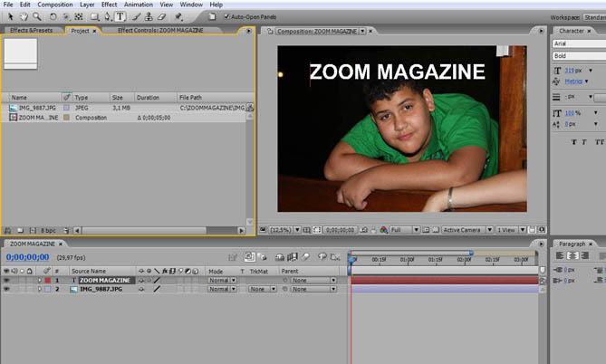 O texto será aplicado sobre uma imagem. Então vamos adicionar esta última sobre a composição e, com a ferramenta de texto, escrever uma mensagem: