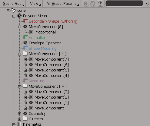 Dentro do Explorer o XSI guarda todas as informações sobre as alterações que o modelosofreu em cada um dos modos de construção.