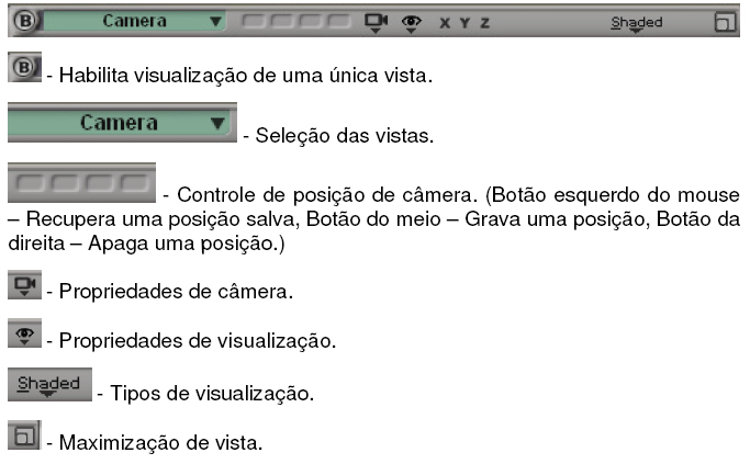 - Controle de posição de câmera (Botão esquerdo do mouse Recupera uma posição salva, Botão do meio Grava uma posição, Botão da direita Apaga uma posição)