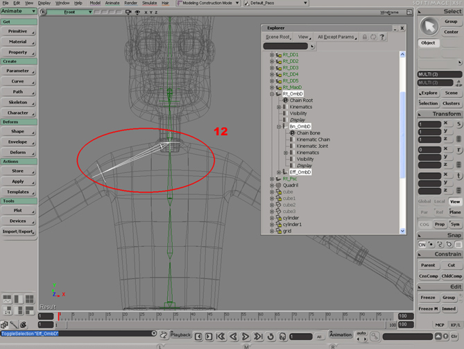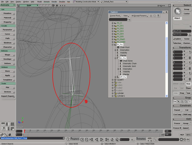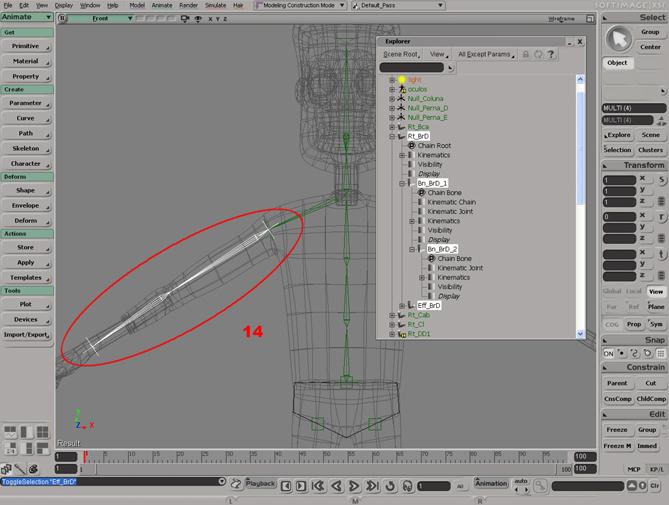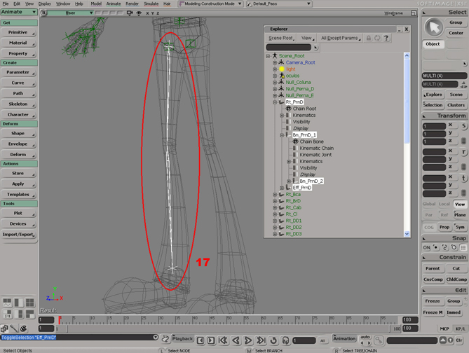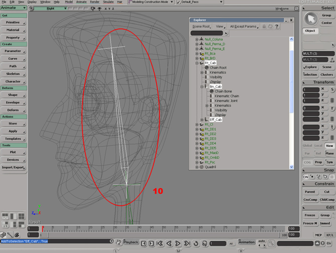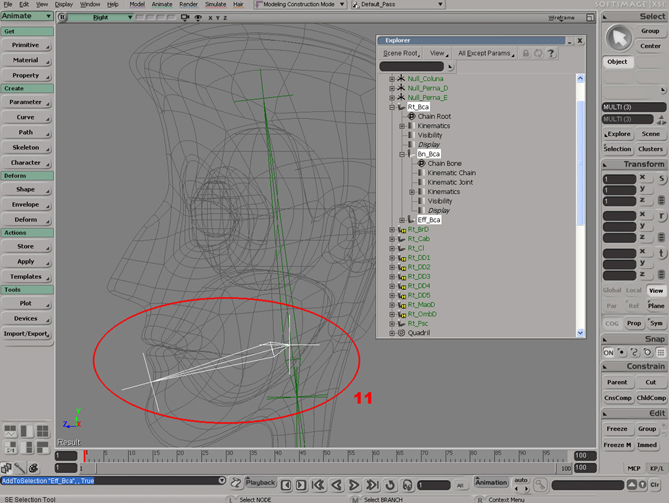 9 – Faça uma nova cadeia para o pescoço. Alinhe o Root dessa cadeia com o “Eff_Cl”.
