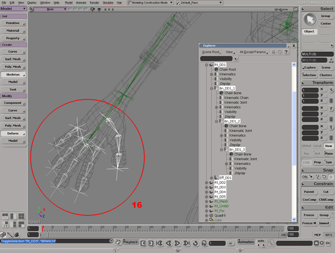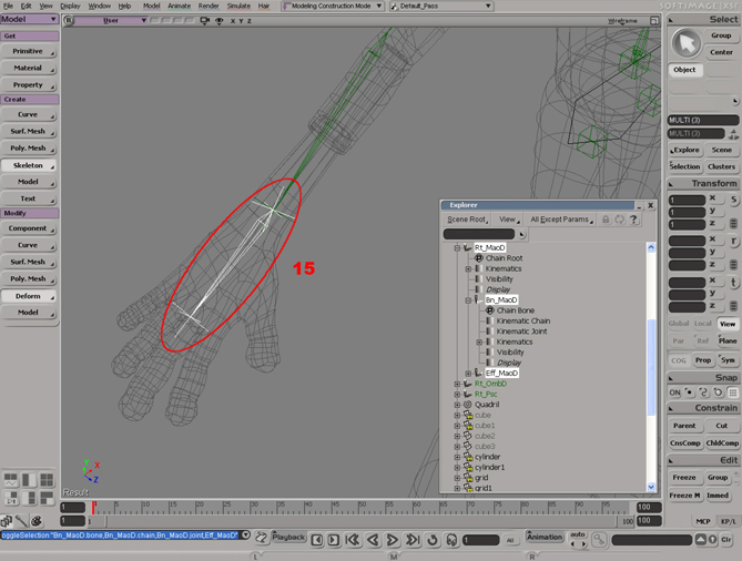 14 – Faça uma nova cadeia para a mão direita. Alinhe o Root dessa cadeia com o “Eff_BrD” (caso a ferramenta “Grid / Centers” não tenha sido ligada).