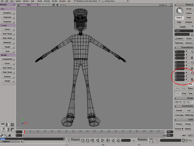 - Selecione toda a geometria e centralize-a no centro do universo (deixando todos os valores da translação igual à zero)