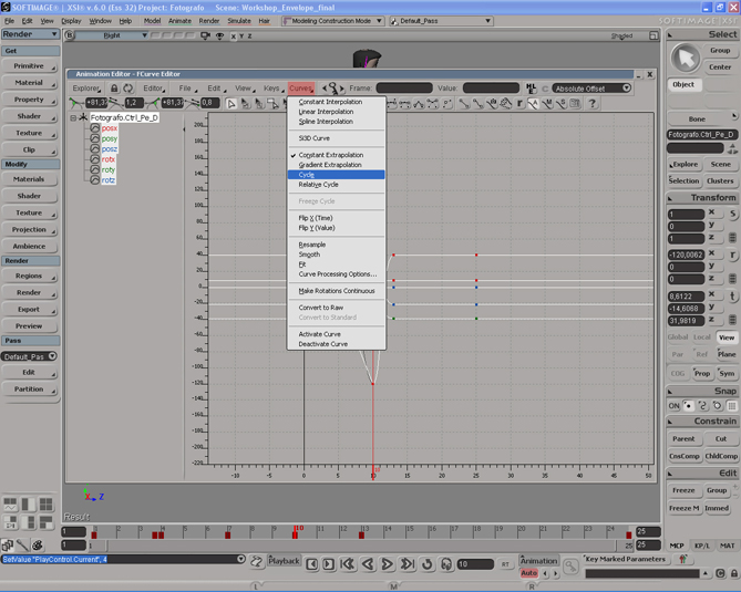 Agora, pegamos como referencia apenas os primeiros 12 frames da animação. Exatamente no meio dos dois extremos que criamos ( frame 6), vamos colocar uma pose de passagem. Essa pose é importante, pois indica a fluidez de movimento de um frame para outro.
