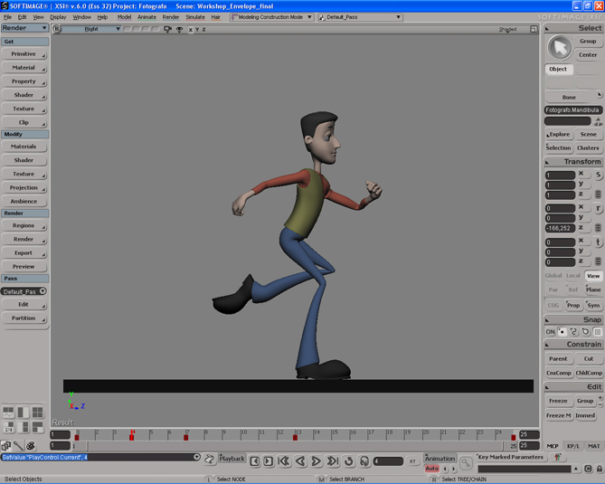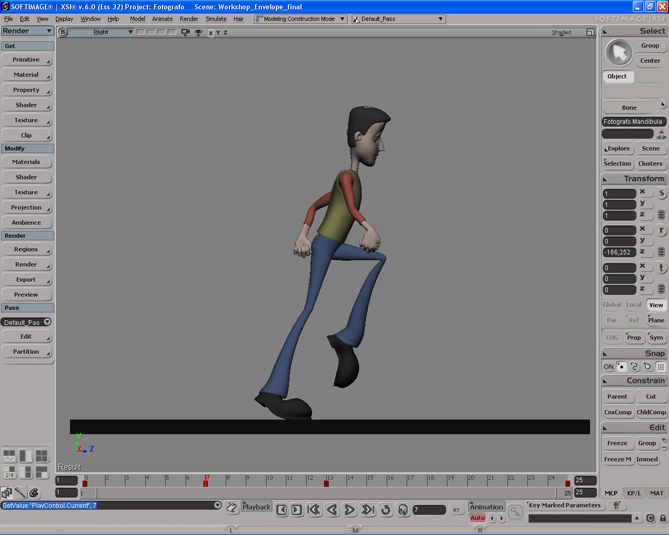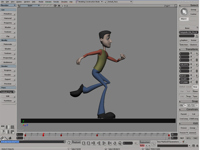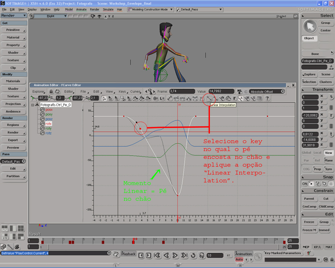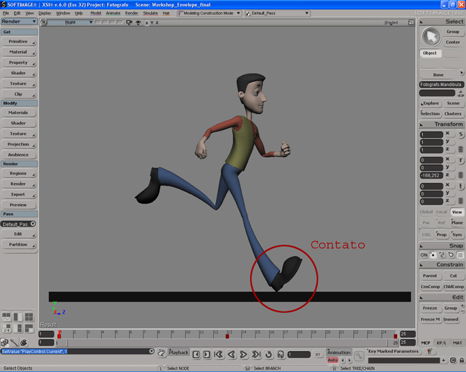 Vamos agora para os pés do personagem. O mais importante nessa fase é manter o pé fixo no chão, tentar evitar qualquer tipo de deslizamento e ultrapassagem do chão (ativar o “plateau” ajuda).