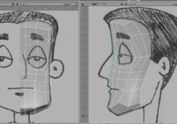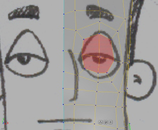 Com o olho mais detalhado, partiremos agora para a definição do nariz, selecionando na visão lateral quais os polígonos que serão “Extrudados”.