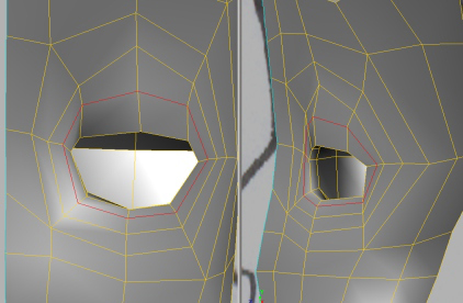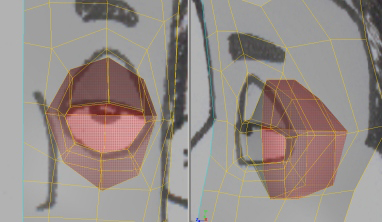 Dando início ao detalhamento do olho, primeiro selecionaremos os polígonos referentes ao mesmo, e com a ferramenta “Extrude” (atalho ctrl + D), ajustando na escala (atalho X), criaremos o primeiro edge loop.