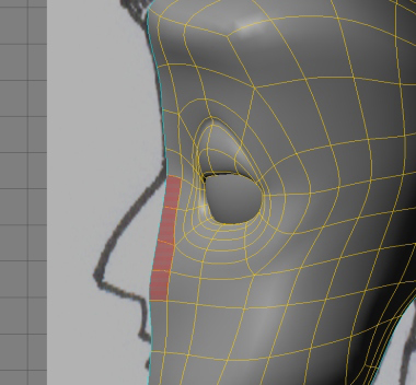 Ajustaremos os pontos das novas linhas criadas para ajustar ao volume do rosto, já deixando também um espaço para a criação do olho.