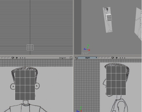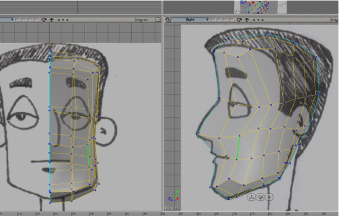 Com a ferramenta “Move” (atalho M) nas perspectivas “Right e Front” começaremos a reajustar os vértices para que possamos dar um primeiro volume ao rosto do fotógrafo.