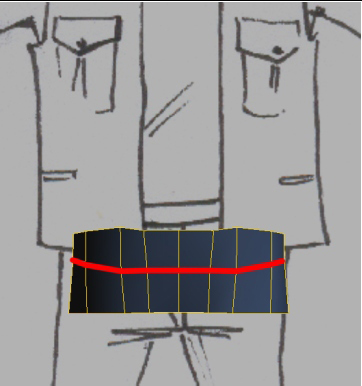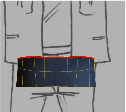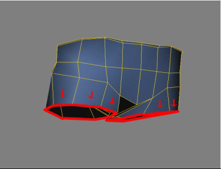 Mais uma linha no mesmo sentido da anterior, mas desta vez bem próxima do topo da calça. Este corte serve para sustentar a geometria naquele local para a aplicação do geometry aproximation.