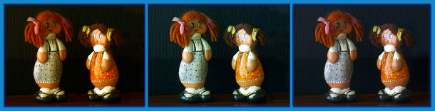 A figura dos bonecos de pedra abaixo mostra o efeito da iluminação com luzes de tipos diferentes:Esse ajuste é o white balance, ou ajuste (balanço) do branco. As diferentes tonalidades da luz que ilumina os bonecos ocorrem porque a intensidade das 3 cores RGB não são as mesmas para cada tipo de lâmpada. O que o processo do white balance faz então é reajustar essas cores, compensando uma e outra para que as intensidades de cada uma fiquem iguais, ou seja, vermelho=verde=azul.