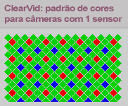 A técnica ClearVid quando empregada em câmeras com um único sensor ao invés de 3, lança mão do artifício de recobrir os pixels por filtros coloridos, nas cores RGB , para gerar as cores da imagem. Tradicionalmente esta abordagem é efetuada através do padrão Bayer, com maior participação da cor verde por ser a que o olho humano percebe com mais facilidade. Mas aqui a proporção da participação da cor verde foi aumentada ainda mais: ao invés de 2 pixels com filtros verdes para cada 1 azul e 1 vermelho, tem-se 6 pixels verdes para cada 1 azul e 1 vermelho. Obviamente no arranjo 3 CMOS esta técnica de filtros não é empregada, por ser desnecessária. O desenho abaixo mostra esta distribuição dos filtros: