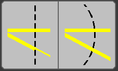 Os desenhos acima mostram um tubo de imagem tradicional (tipo delta) visto de lado. O da esquerda ilustra o que aconteceria com cada feixe se a tela fosse verticalmente plana: o ângulo de incidência quando as linhas mais altas ou mais baixas na tela fossem ser desenhadas faria com que parte do feixe fosse obstruída. O desenho da direita mostra por que a máscara nesse tipo de tubo tem que ser curva: para não obstruir o feixe. O tubo Trinitron não apresenta este problema, pois como a máscara possui frestas de alto a baixo, não existem as interrupções mostradas no desenho acima, ou seja, o feixe passa pala fenda em qualquer ângulo: