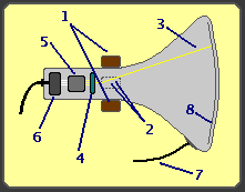 O desenho acima mostra um tubo de imagem esquematizado. Dentro do tubo , feito de vidro, existe um razoável grau de vácuo , daí o peso do mesmo - o vidro precisa ser espesso, principalmente em sua parte frontal, para suportar a pressão atmosférica sem risco de implodir devido ao vácuo em seu interior. O canhão de elétrons é formado pelo cátodo (6), onde os mesmos são gerados. O CRT utiliza alta voltagem para gerar o fluxo de elétrons, cerca de 200 vezes maior do que a voltagem da corrente elétrica que alimenta o aparelho. A seguir, estes elétrons são acelerados através de um dispositivo situado logo após o cátodo, indicado em (5). São então focados (4) para formar o feixe concentrado. E é este feixe de elétrons que atinge a superfície interna do tubo (3), recoberto pela camada de fósforo (8): o ponto atingido pelo feixe torna-se luminoso, podendo ser visto do lado de fora do tubo. Para que os elétrons sejam atraídos para a tela, a mesma é energizada de maneira oposta ao cátodo, no ponto indicado por (7), o ânodo.