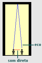 No entanto, dependendo das dimensões, do tipo de superfície, da geometria do ambiente, da localização da fonte sonora e do ouvinte (ou microfone), pode ocorrer a audição de cópias completas e distintas do som original. Essas cópias recebem o nome de eco. O eco ocorre tipicamente onde existem superfícies propícias para reflexão do som (superfícies rígidas e planas) distantes no mínimo 15 metros da fonte sonora, o que significa que em ambientes pequenos (uma sala onde as paredes distem no máximo 5 metros umas das outras por exemplo) não haverá eco e sim reverberação. A figura abaixo ilustra como ocorre o eco: