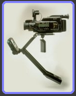 Ao contrário dos modelos sofisticados destinados ao segmento profissional, onde o equipamento é grande, pesado e preso ao corpo do operador (e este tem que ter um especialista em seu manuseio), os modelos destinados ao segmento semi-profissional são leves, sendo seguros com as mãos e sua operação é bem mais simples. Os movimentos da câmera são isolados dos movimentos do operador da mesma através de um pequeno pino em cima do qual equilibra-se todo o conjunto, câmera e estabilizador; o formato alongado do estabilizador tem a função de abaixar o centro de gravidade do conjunto. Desta forma, devido à inércia, ainda que a mão incline para um lado ou outro o suporte pelo qual o conjunto é seguro (na foto, embaixo da base da câmera), o mesmo tenderá a se manter estabilizado. Na realidade, a câmera pode mover-se livremente inclinando-se para frente e para trás e também para os lados; o que a impede de mover-se é a massa do conjunto, com sua inércia, o mesmo princípio que mantém estável o equilibrista que anda sobre o arame de aço, graças à inércia da longa barra de metal na qual o mesmo apoia-se.