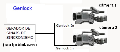 Para que isto ocorra, as 2 câmeras no exemplo acima devem receber uma mesma referência de sincronismo externo, ou seja, necessitam ter a opção de aceitar sinais externos de sincronismo. Isto significa que precisam ter um conector especial de entrada denominado genlock.