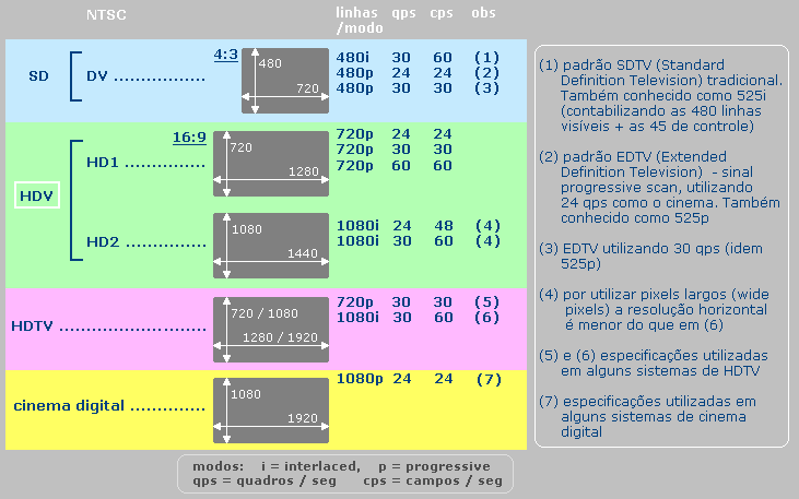 Ao contrário dos sistemas convencionais, onde diferentes formatos de vídeo possuem diferentes valores de resolução horizontal mas mantém a mesma resolução vertical (para compatibilidade com os padrões tradicionais NTSC, PAL e SECAM), nos sistemas de alta definição, como o HDV e o HDTV a resolução vertical não segue os valores tradicionais, possuindo um número maior de linhas.