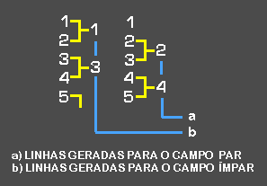O desenho acima mostra um processo sequencial de leitura, linha após linha (denominado progressive scan), no entanto na maioria das vezes as linhas são lidas de forma alternada (pares/ímpares, em um processo denominado interlace).