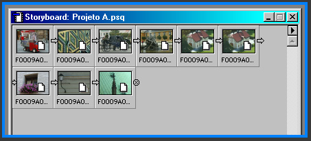 As cenas são originalmente dispostas no storyboard organizadas em fileiras umas abaixo das outras. Cada cena pode ser então movida de lugar, sendo inserida entre as demais. Efeitos e transições podem ser acrescentados entre as cenas. Este rearranjo, efetuado através do clicar e arrastar do mouse vai formando uma sequência final para o vídeo e esta pode, opcionalmente, ser movida a seguir para a timeline. A figura abaixo mostra um trecho da janela Storyboard do software Adobe Premiere: