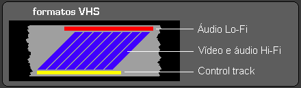 O desenho abaixo esquematiza a disposição das trilhas de imagem e som na fita VHS: