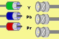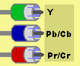 Embora seja comum encontrar conectores RCA coloridos em entradas do tipo componentes (como mostra o desenho acima), não são sinais RGB puro, como visto, que trafegam nessas entradas / saídas e sim sinais com valores matematicamente equivalentes a RGB. Assim, é incorreto dizer que YPbPr e YCbCr são o mesmo que RGB: tratam-se de color spaces completamente diferentes. YPbPr e YCbCr são sinais vídeo componentes e não sinais RGB.