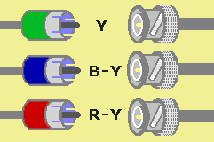 Quando os sinais YUV permanecem na forma analógica após a conversão a partir do original RGB e são nesta forma transmitidos através de cabos de um dispositivo para outro, os conectores destes cabos recebem uma nomenclatura diferente; ao invés da notação YUV, os sinais são indicados por Y , B-Y e R-Y, como mostra a figura abaixo: