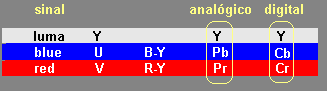 o que é incorreto, pois "Cb" e "Cr" referem-se a sinais digitais, não sinais analógicos. A incrição correta no caso é somente Y - Pb - Pr, pois normalmente trata-se de um sinal analógico .